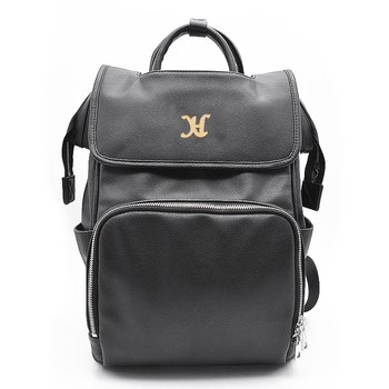 הסיטונאי עמיד למים תיק תיק גב שחור מלא מובלט לוגו פו עור מרובים כיסים תיק גב