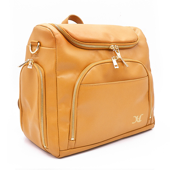 Benutzer definierte Fabrik tragbare große Kapazität braune Leder Mama Reisetasche Kindergarten Baby Windel Rucksack mit Wickel unterlage